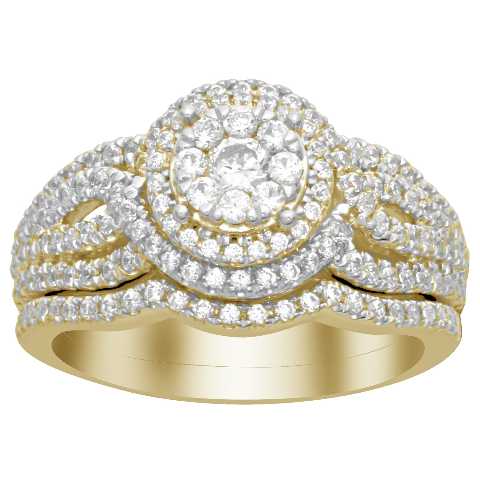 LADIES BRIDAL SET 1.00CT ROUND DIAMOND 14K YELLOW GOLD
