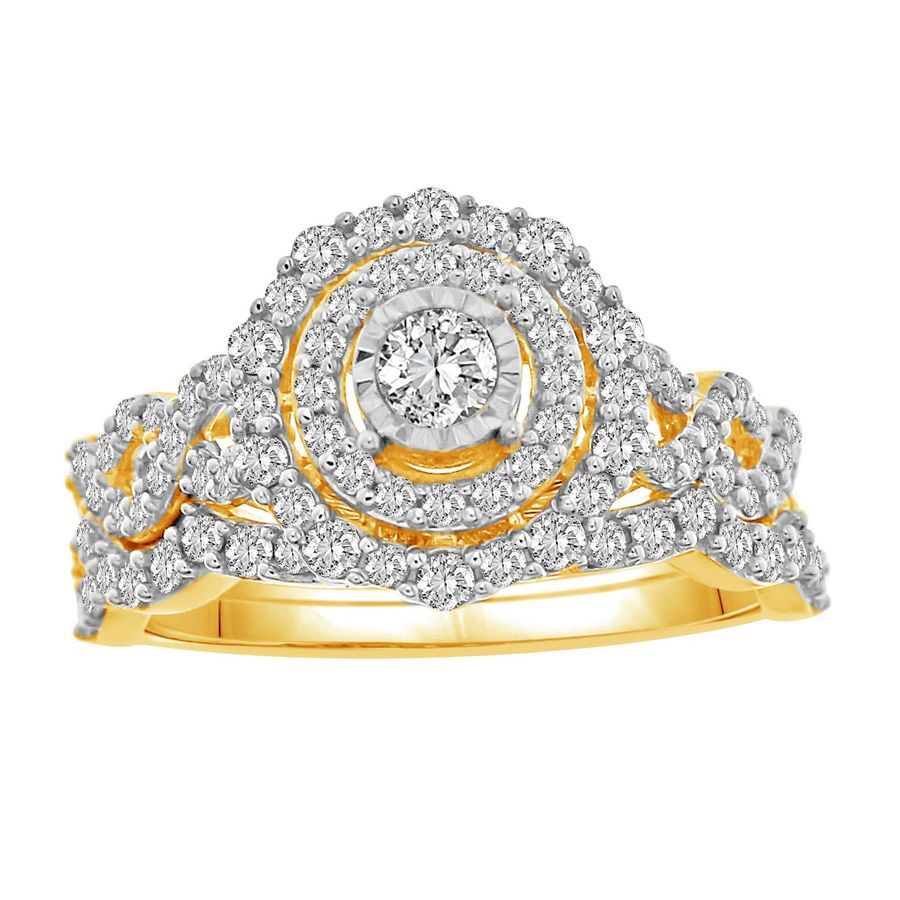 LADIES BRIDAL SET 1.00CT ROUND DIAMOND 14K YELLOW GOLD