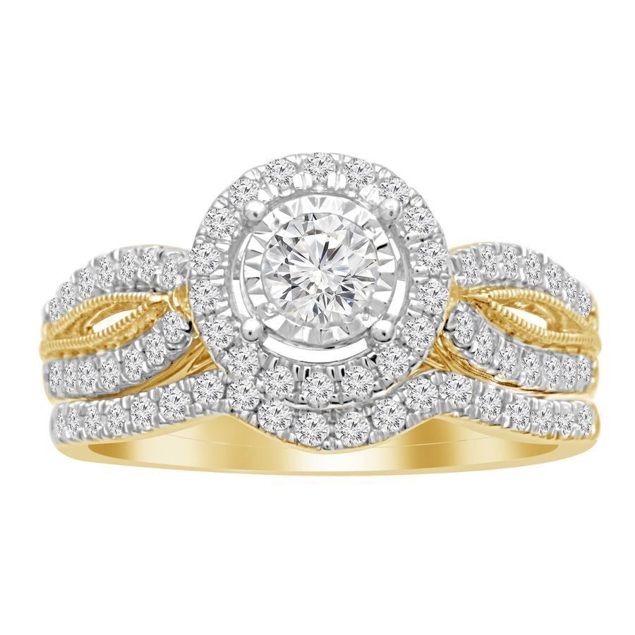 LADIES BRIDAL SET 1.00CT ROUND DIAMOND 14K YELLOW GOLD