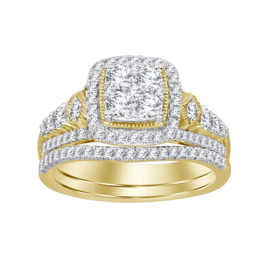 LADIES BRIDAL SET 1.00CT ROUND DIAMOND 14K YELLOW GOLD