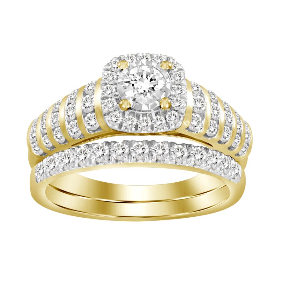 LADIES BRIDAL SET 1.00CT ROUND DIAMOND 14K YELLOW GOLD