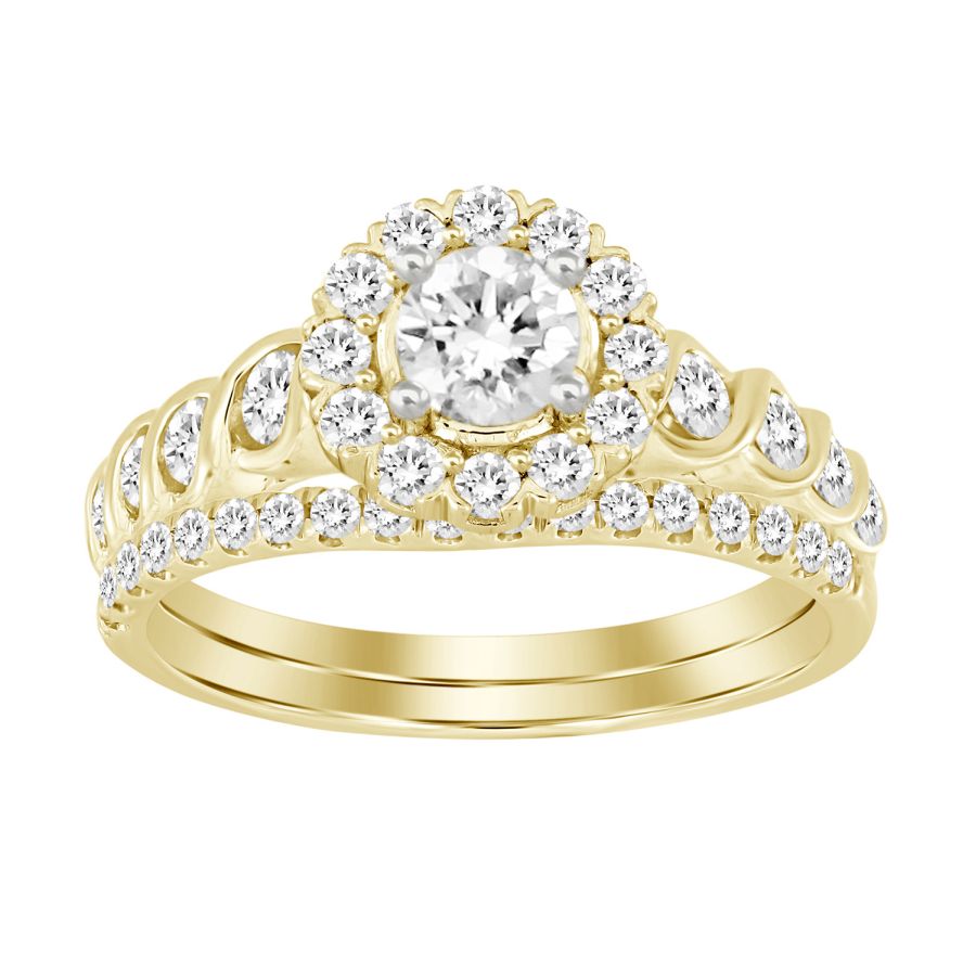 LADIES BRIDAL SET 1.00CT ROUND DIAMOND 14K YELLOW GOLD (CENTER STONE 0.33CT ROUND DIAMOND)