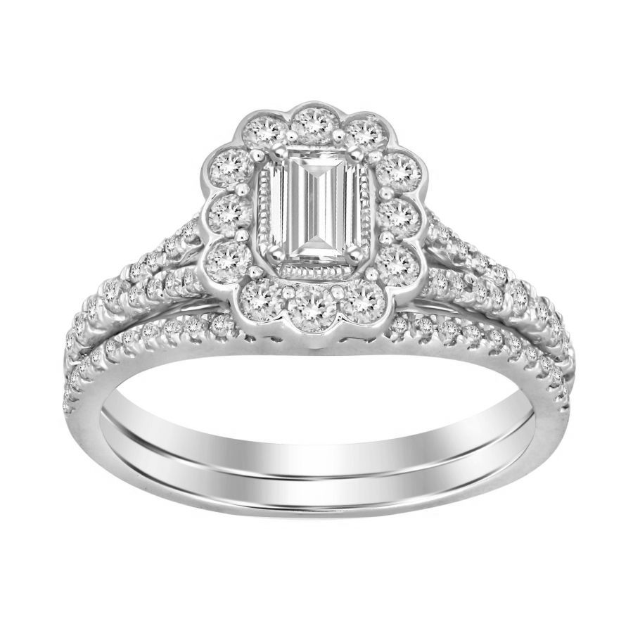 LADIES BRIDAL SET 1.00CT ROUND/EMERALD DIAMOND 14K WHITE GOLD