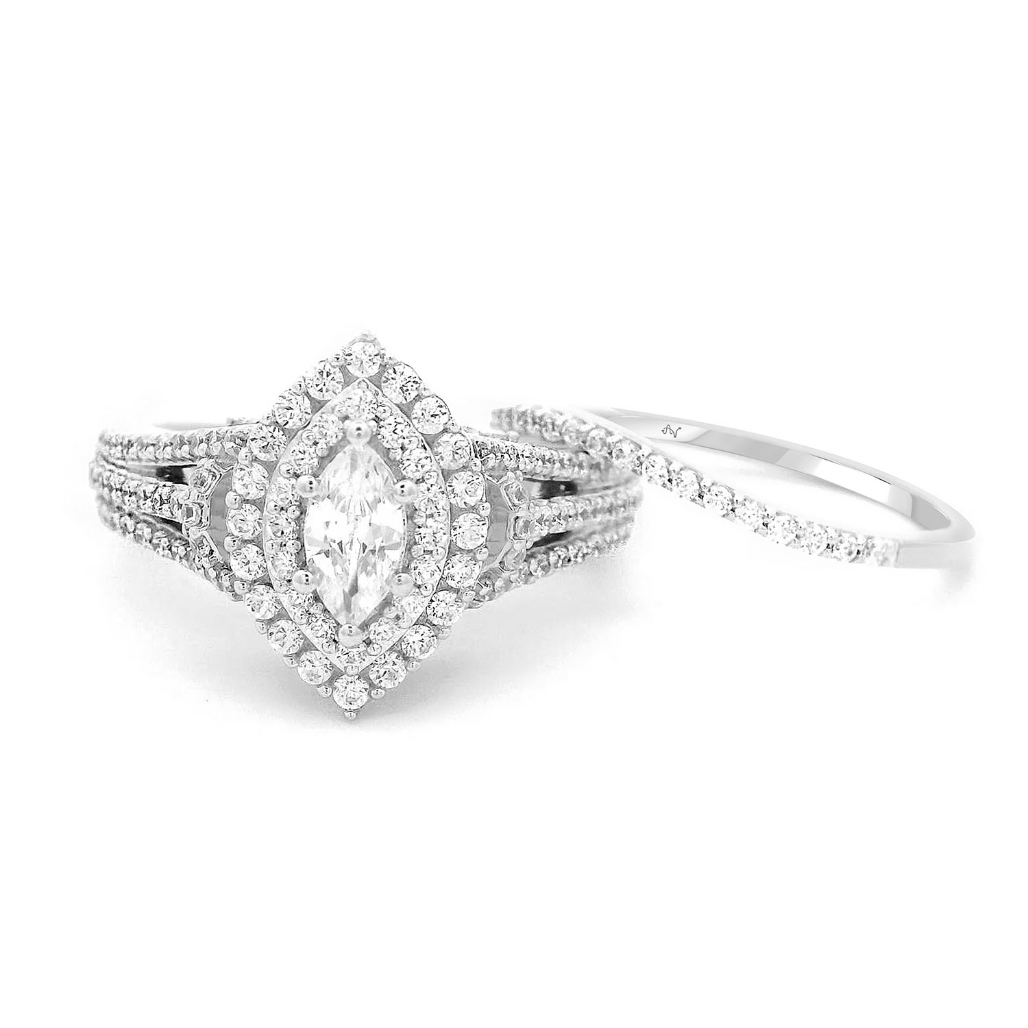 Home Rings LADIES BRIDAL SET 1.00CT ROUND/MARQUISE DIAMOND 14K WHITE GOLD (CENTER STONE 0.25CT MARQUISE DIAMOND)