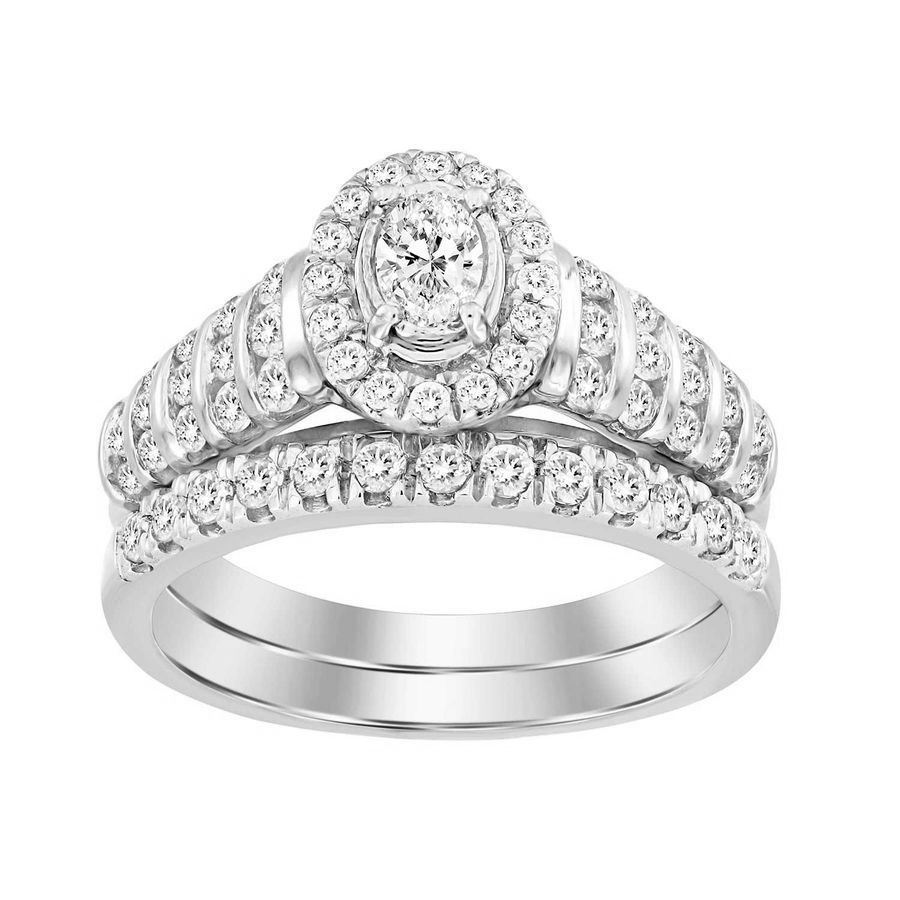 LADIES BRIDAL SET 1.00CT ROUND/OVAL DIAMOND 14K WHITE GOLD (CENTER STONE 0.20CT OVAL DIAMOND)