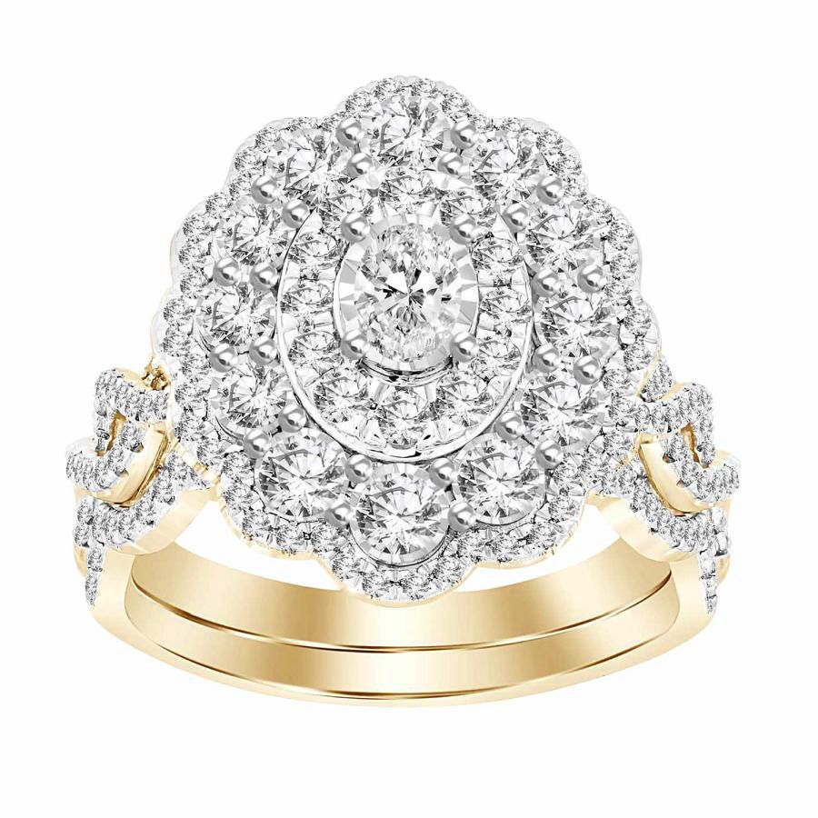 Home Rings LADIES BRIDAL SET 1.00CT ROUND/OVAL DIAMOND 14K YELLOW GOLD (CENTER STONE 0.10CT OVAL DIAMOND)