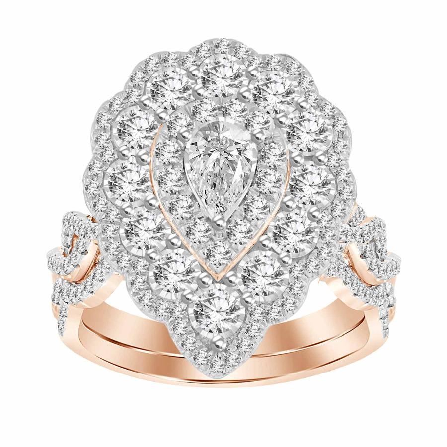 LADIES BRIDAL SET 1.00CT ROUND/PEAR DIAMOND 14K ROSE GOLD