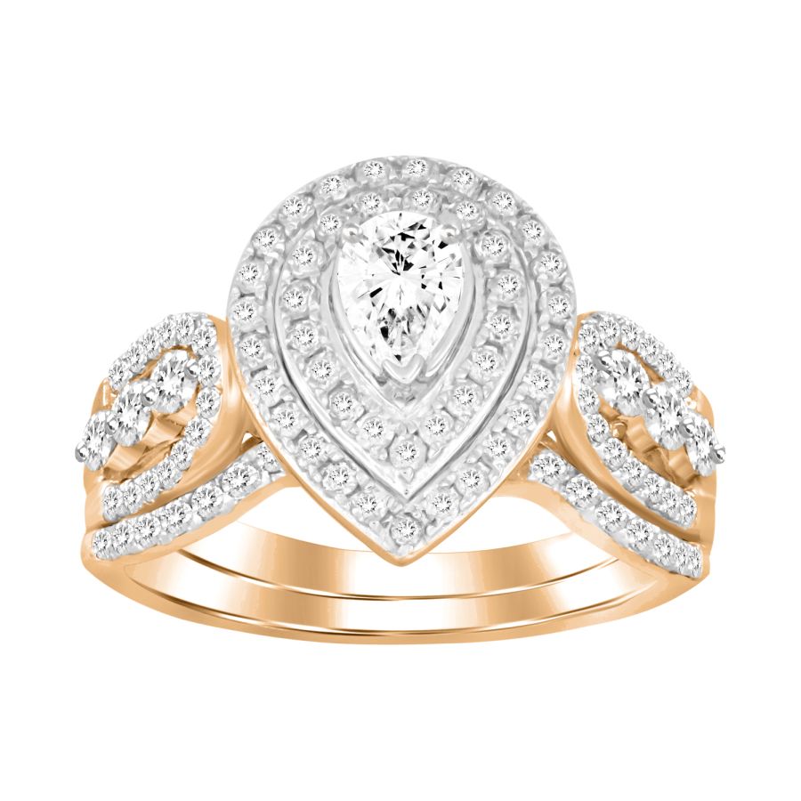 LADIES BRIDAL SET 1.00CT ROUND/PEAR DIAMOND 14K ROSE GOLD