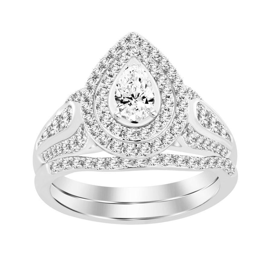 LADIES BRIDAL SET 1.00CT ROUND/PEAR DIAMOND 14K WHITE GOLD (CENTER STONE 0.20CT PEAR DIAMOND)