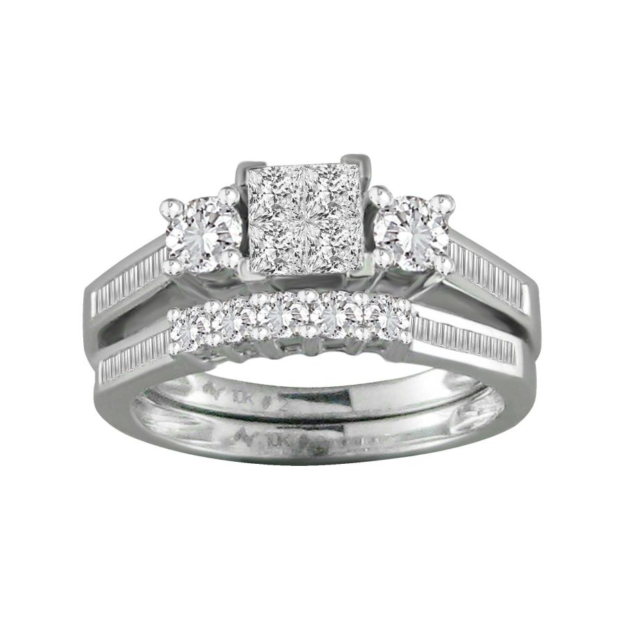 LADIES BRIDAL SET 1.00CT ROUND/PRINCESS/BAGUETTE DIAMOND 10K WHITE GOLD