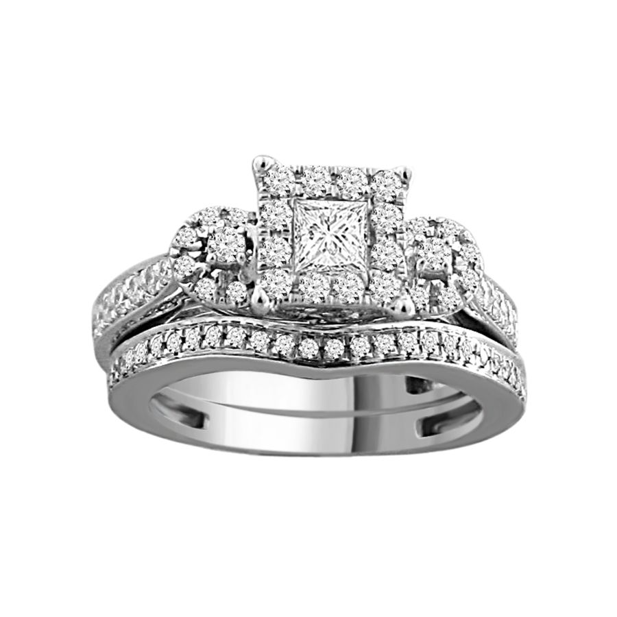 LADIES BRIDAL SET 1.00CT ROUND/PRINCESS DIAMOND 14K WHITE GOLD