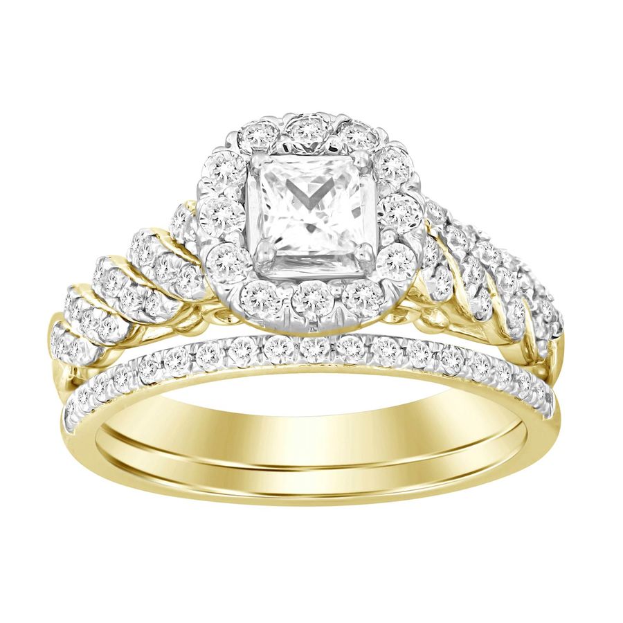 LADIES BRIDAL SET 1.00CT ROUND/PRINCESS DIAMOND 14K YELLOW GOLD