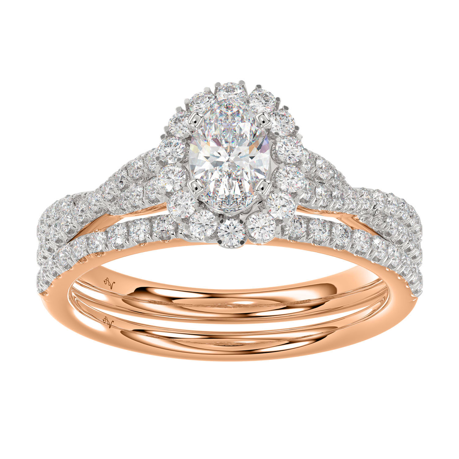 LADIES BRIDAL SET 1.10CT ROUND DIAMOND 14K ROSE GOLD
