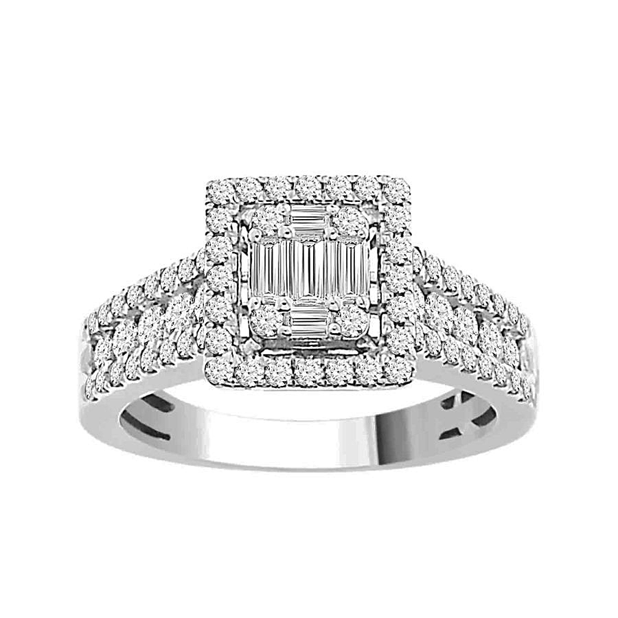 LADIES BRIDAL SET 1.15CT ROUND/BAGUETTE DIAMOND 14K WHITE GOLD