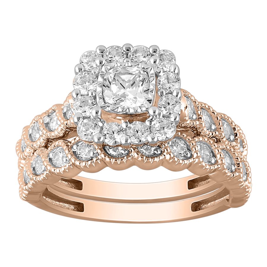 Home Rings LADIES BRIDAL SET 1.25CT ROUND/CUSHION DIAMOND 10K ROSE GOLD (CENTER STONE 0.33CT CUSHION DIAMOND)