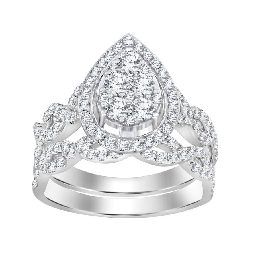 LADIES BRIDAL SET 1.25CT ROUND DIAMOND 14K WHITE GOLD