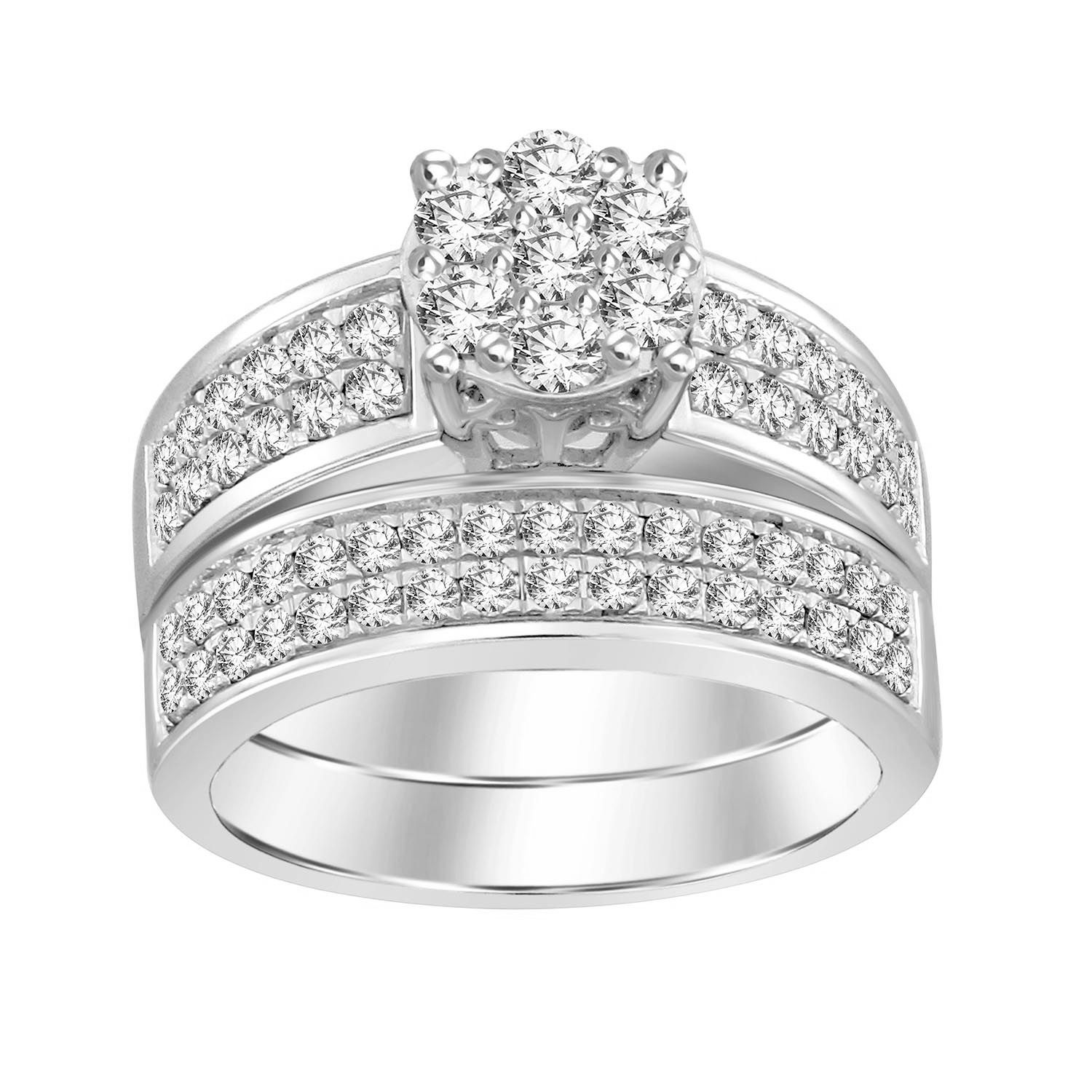 LADIES BRIDAL SET 1.30CT ROUND DIAMOND 10K WHITE GOLD