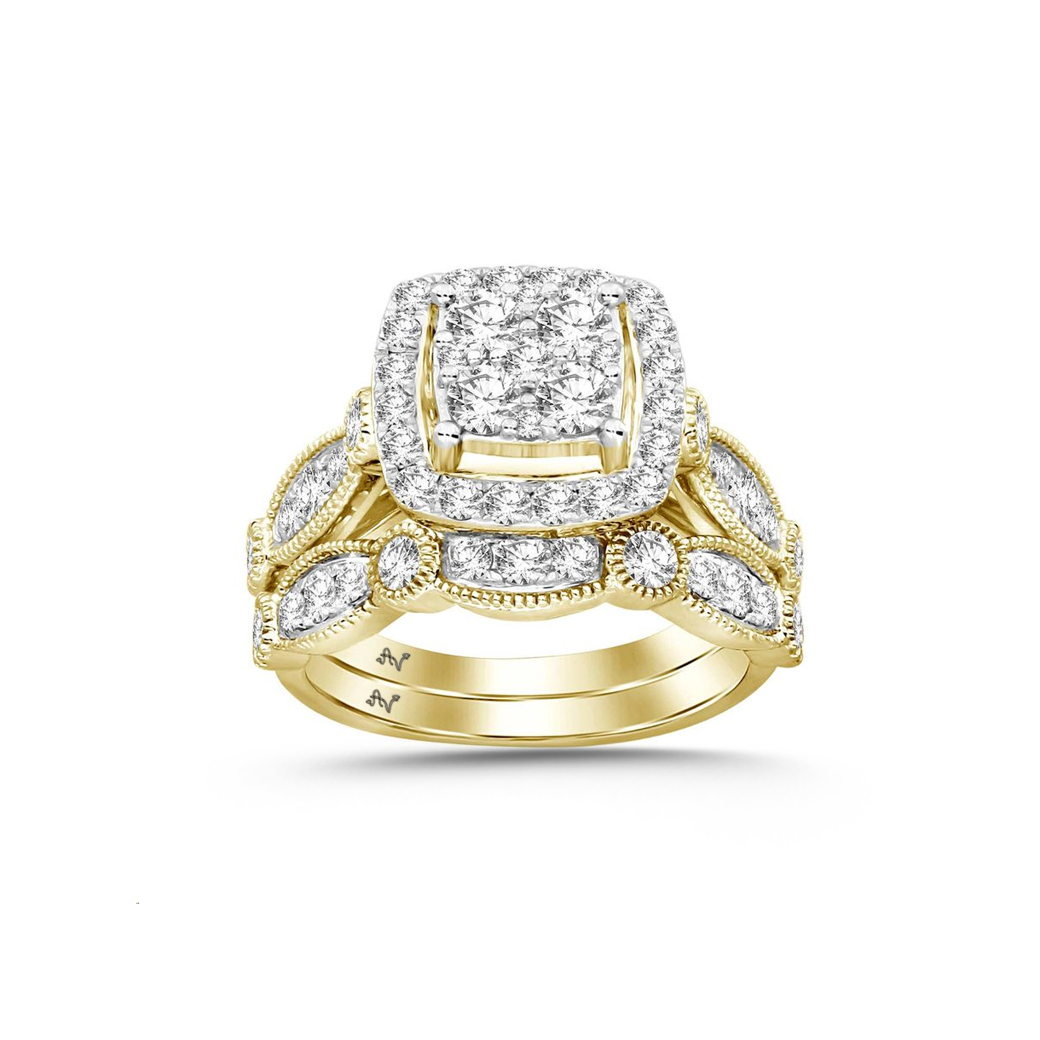 LADIES BRIDAL SET 1.50CT ROUND DIAMOND 10K YELLOW GOLD