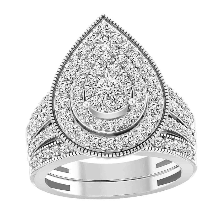 LADIES BRIDAL SET 1.50CT ROUND DIAMOND 14K WHITE GOLD
