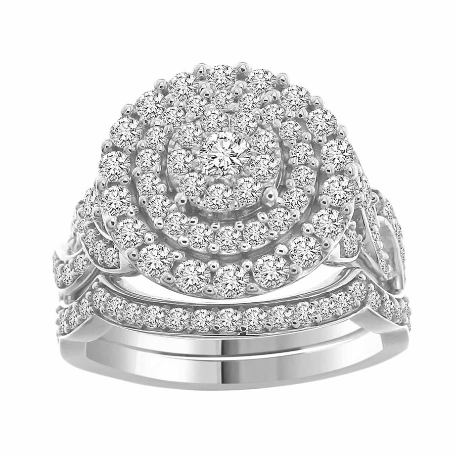 LADIES BRIDAL SET 1.50CT ROUND DIAMOND 14K WHITE GOLD
