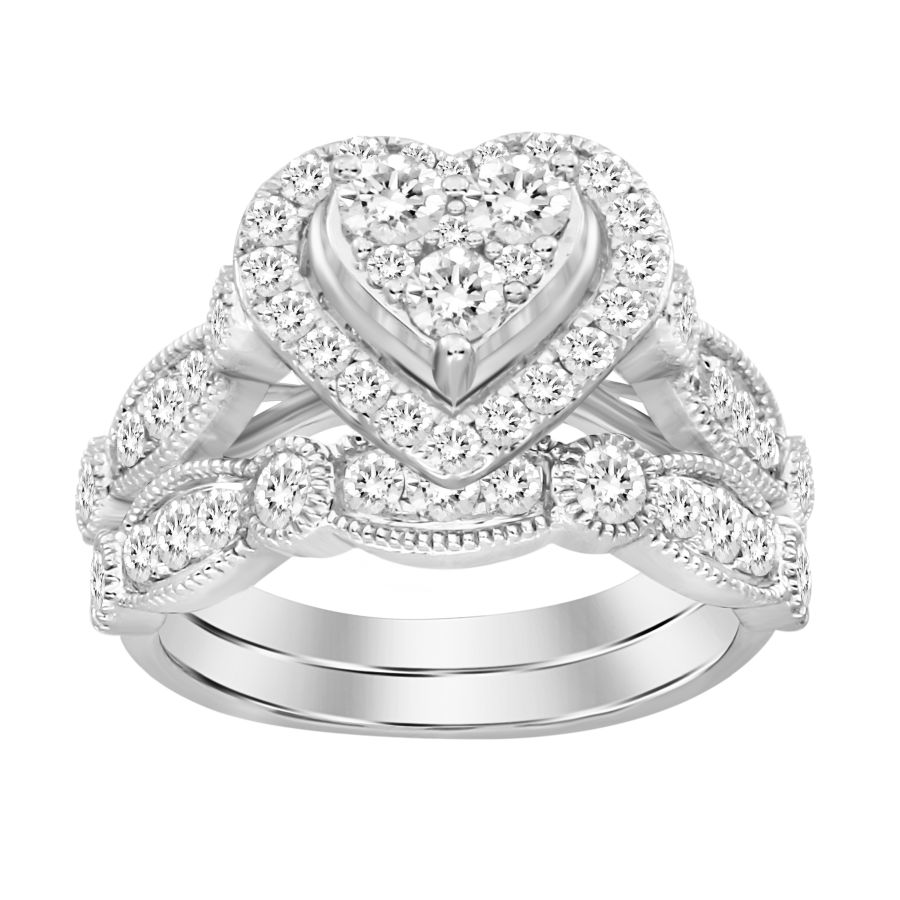 LADIES BRIDAL SET 1.50CT ROUND DIAMOND 14K WHITE GOLD