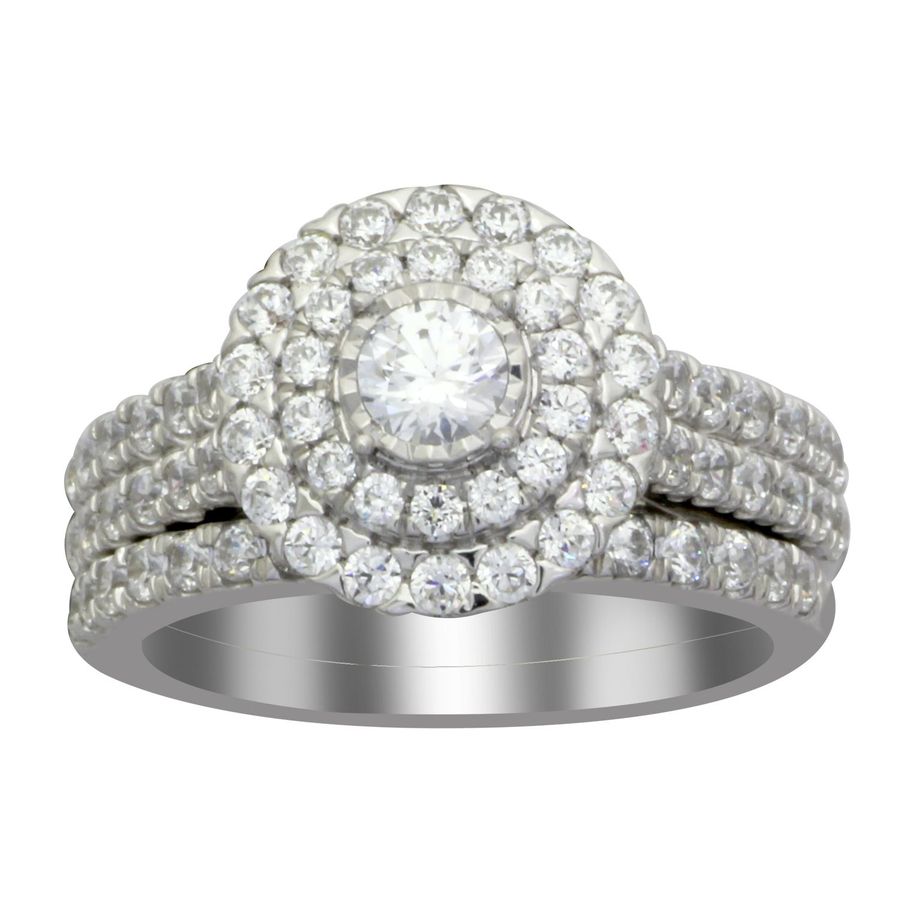 LADIES BRIDAL SET 1.50CT ROUND DIAMOND 14K WHITE GOLD