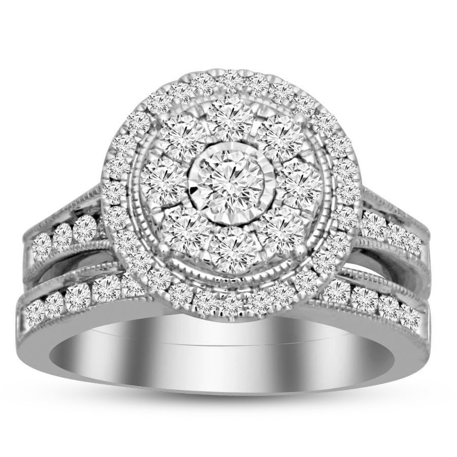 LADIES BRIDAL SET 1.50CT ROUND DIAMOND 14K WHITE GOLD