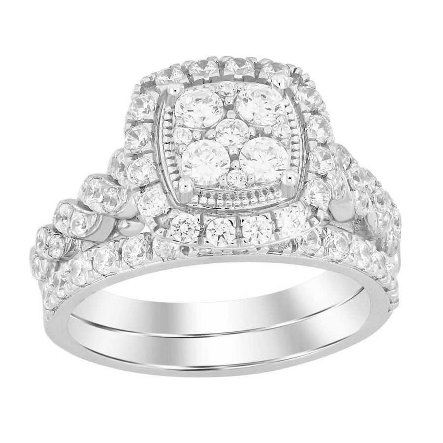 LADIES BRIDAL SET 1.50CT ROUND DIAMOND 14K WHITE GOLD