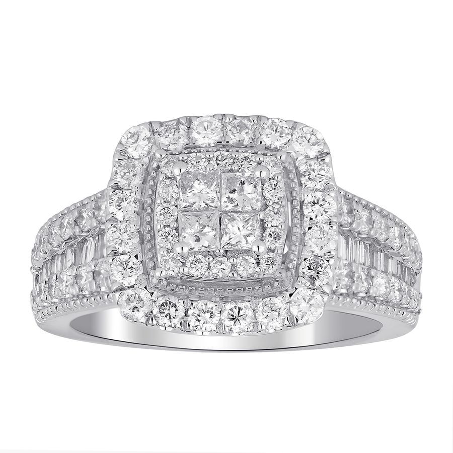 Home Rings LADIES BRIDAL SET 1.50CT ROUND/PRINCESS/BAGUETTE DIAMOND 14K WHITE GOLD