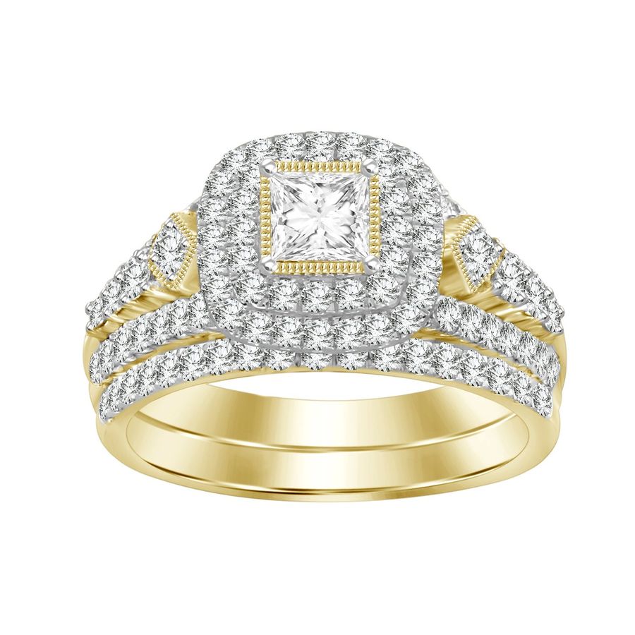 LADIES BRIDAL SET 1.50CT ROUND/PRINCESS DIAMOND 14K YELLOW GOLD