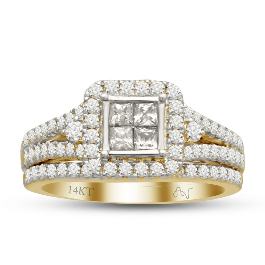 LADIES BRIDAL SET 1.50CT ROUND/PRINCESS DIAMOND 14K YELLOW GOLD