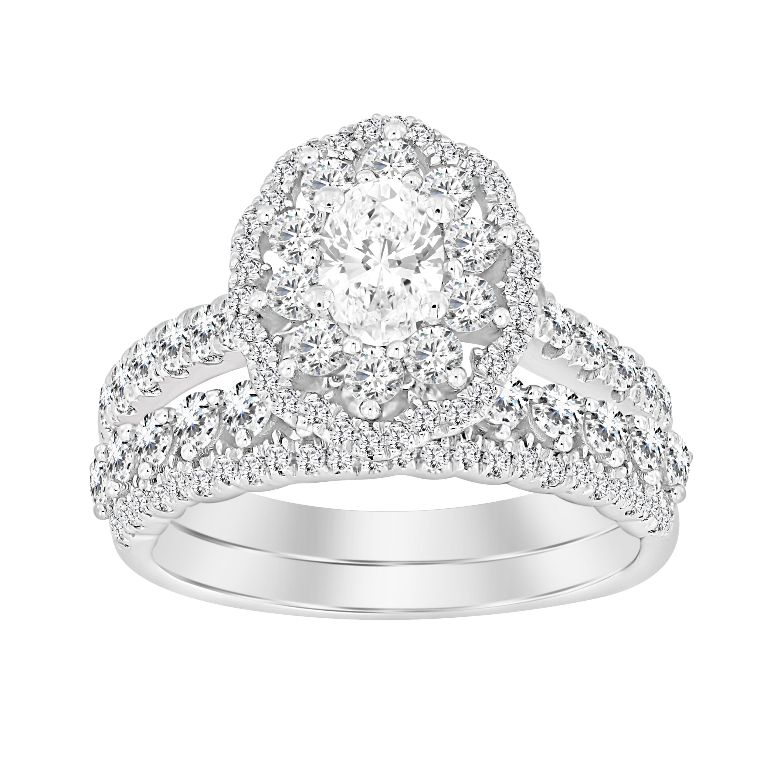LADIES BRIDAL SET 1.75CT ROUND DIAMOND 14K WHITE GOLD(SI QUALITY) (CENTER STONE 0.50 CT OVAL DIAMOND)