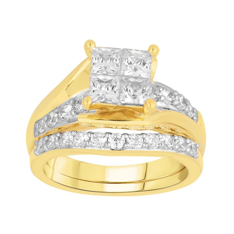 LADIES BRIDAL SET 2.00CT ROUND/PRINCESS DIAMOND 14K YELLOW GOLD