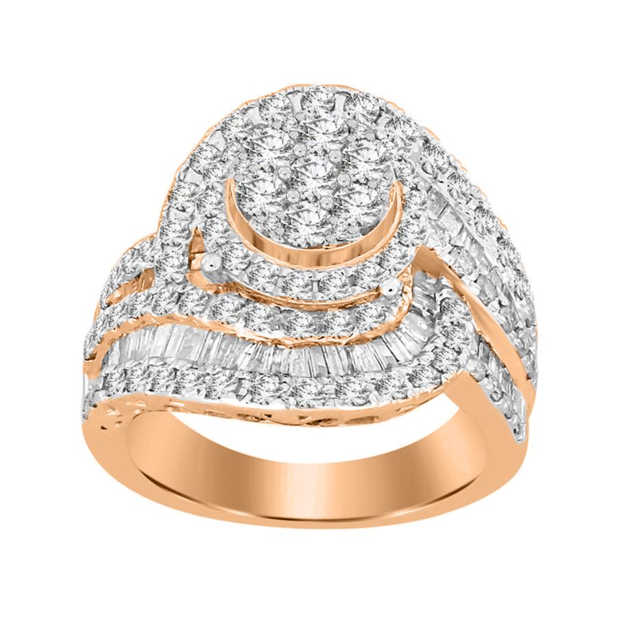 Home Rings LADIES BRIDAL SET 2.50CT ROUND/BAGUETTE DIAMOND 10K ROSE GOLD