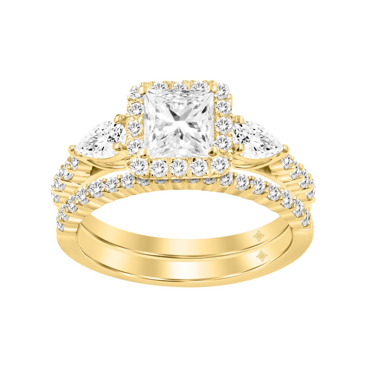 Home Rings LADIES BRIDAL SET 2CT ROUND/PRINCESS/PEAR DIAMOND 14K YELLOW GOLD (CENTER STONE PRINCESS DIAMOND 1CT )