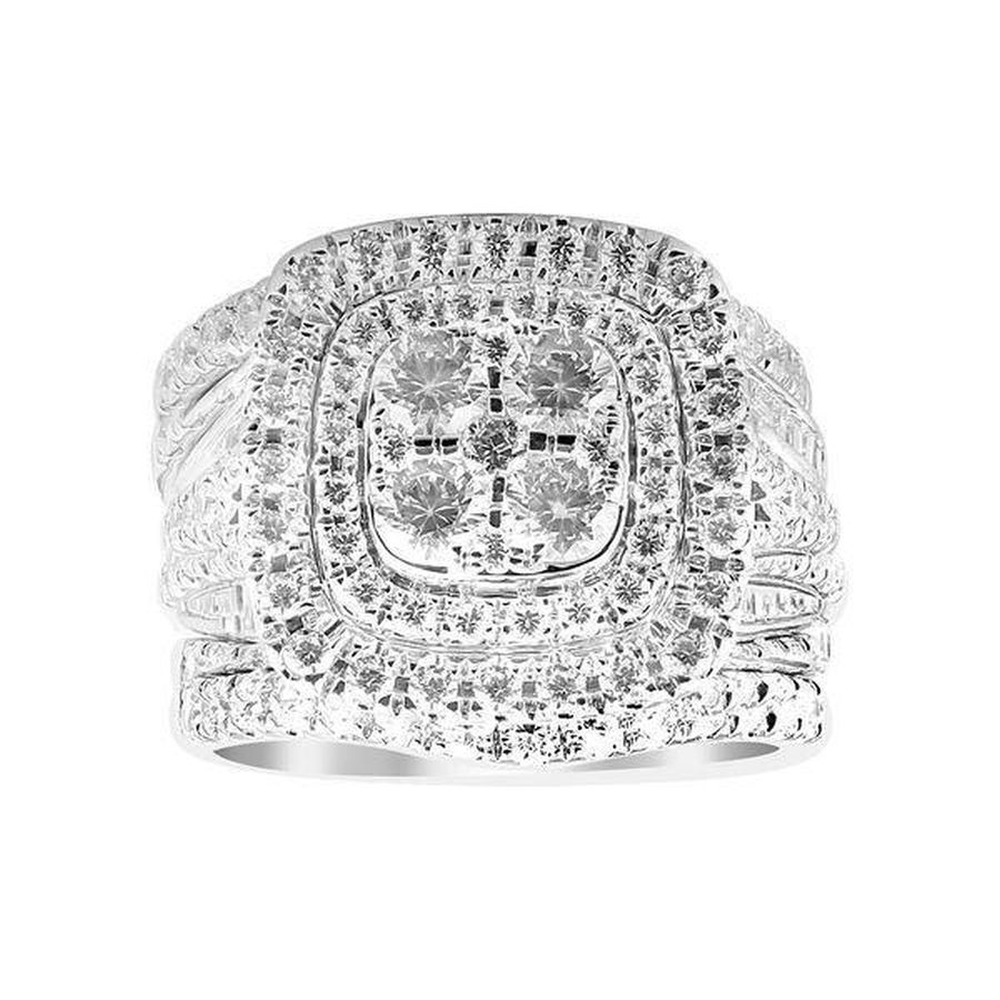 LADIES BRIDAL SET 3.00CT ROUND/BAGUETTE DIAMOND 14K WHITE GOLD