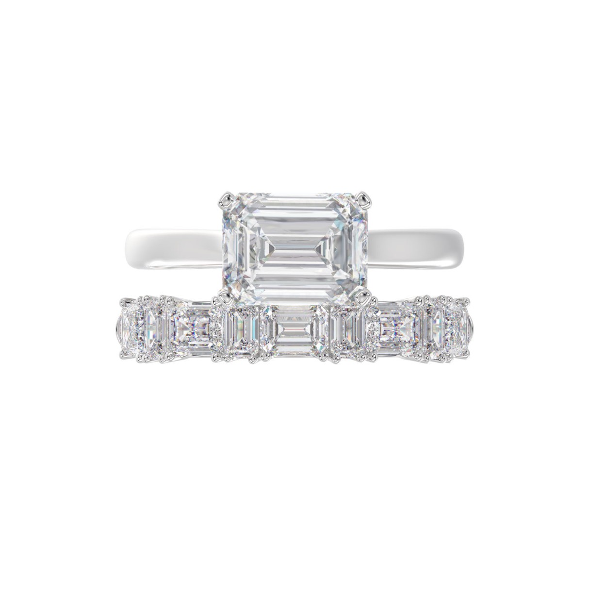 LADIES BRIDAL SET 3 1/2CT ROUND/EMERALD DIAMOND 14K WHITE GOLD (CENTER STONE EMERALD DIAMOND 2.00CT)