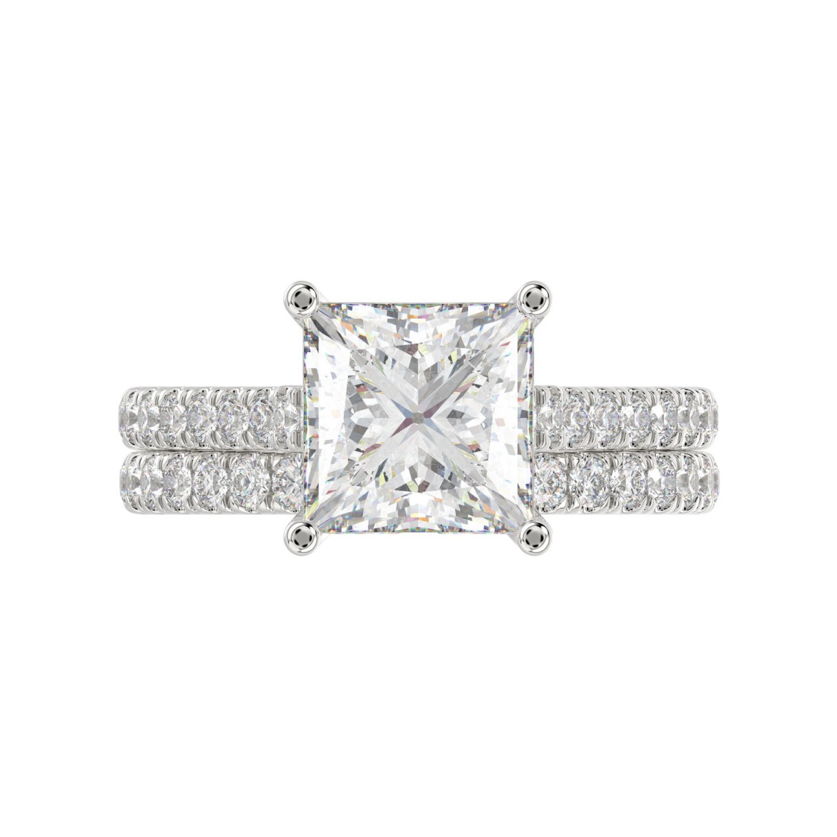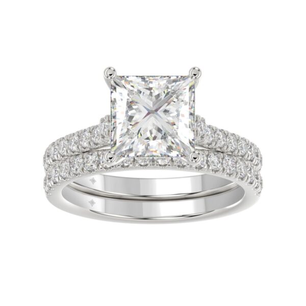 LADIES BRIDAL SET 3 1/2CT ROUND/PRINCESS DIAMOND 14K WHITE GOLD (CENTER STONE PRINCESS DIAMOND 3CT )
