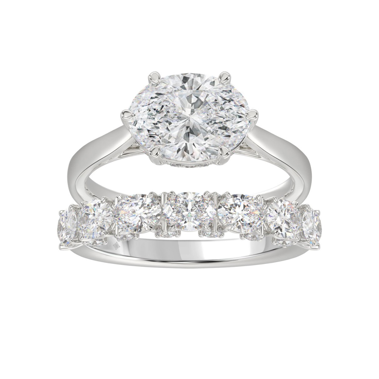Home Rings LADIES BRIDAL SET 3 1/3CT ROUND/OVAL DIAMOND 14K WHITE GOLD