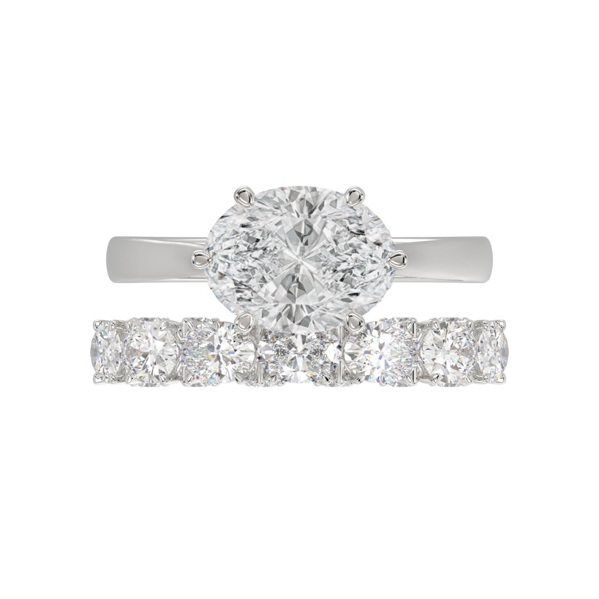 LADIES BRIDAL SET 3 1/3CT ROUND/OVAL DIAMOND 14K WHITE GOLD