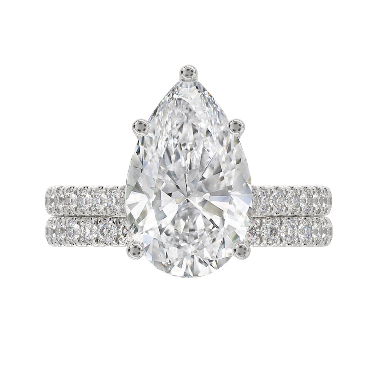 LADIES BRIDAL SET 4 1/2CT ROUND/PEAR DIAMOND 14K WHITE GOLD (CENTER STONE PEAR DIAMOND 4CT )