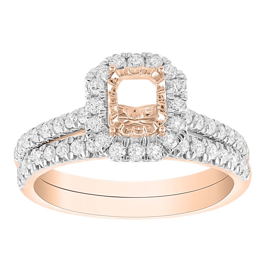 LADIES BRIDAL SET SEMI MOUNT 0.60CT ROUND DIAMOND 14K ROSE GOLD