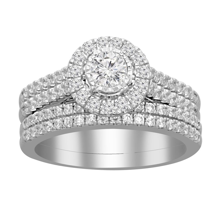 LADIES BRIDAL SET SEMI MOUNT 0.67CT ROUND DIAMOND 14K WHITE GOLD