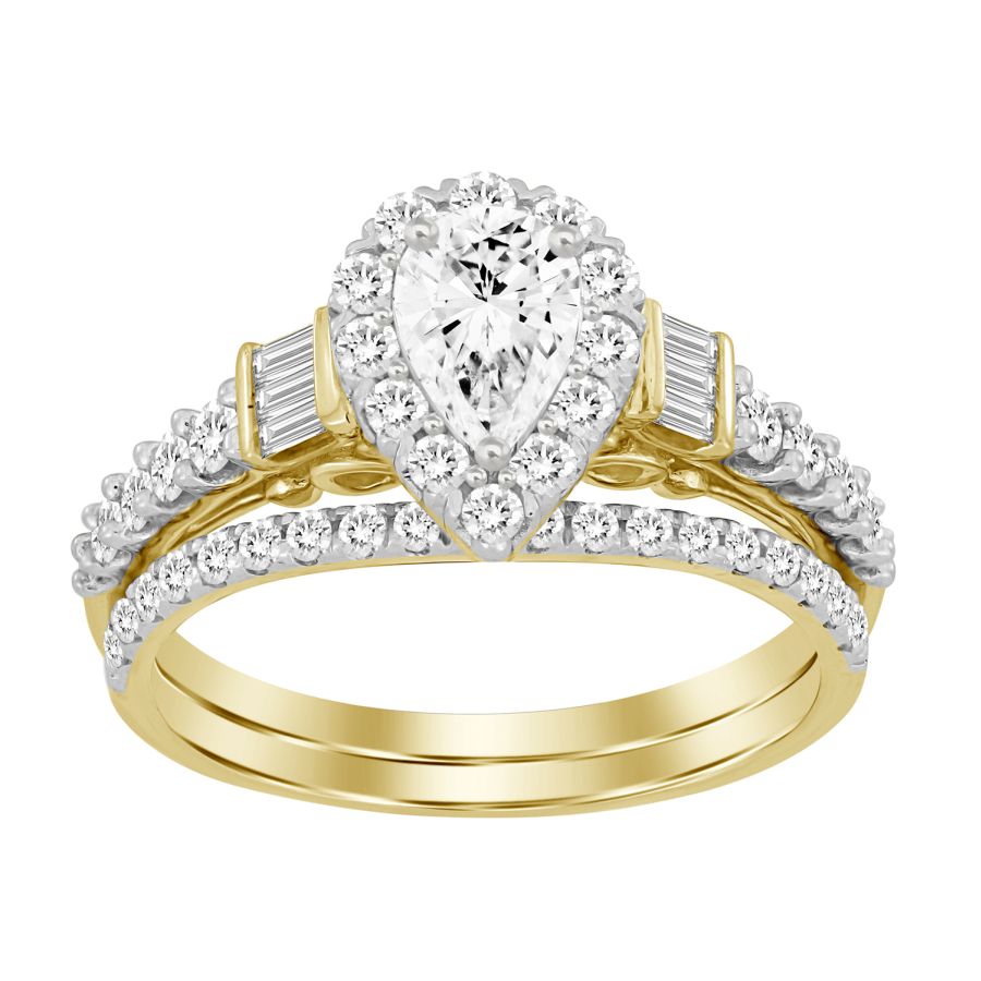 Home Rings LADIES BRIDAL SET SEMI MOUNT 0.70CT ROUND/BAGUETTE DIAMOND 14K YELLOW GOLD