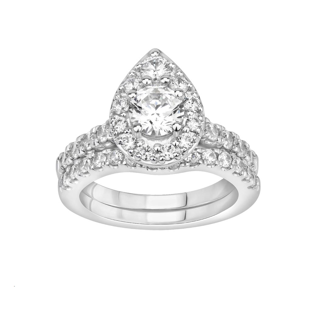 LADIES BRIDAL SET SEMI MOUNT 1.25CT ROUND DIAMOND 18K WHITE GOLD