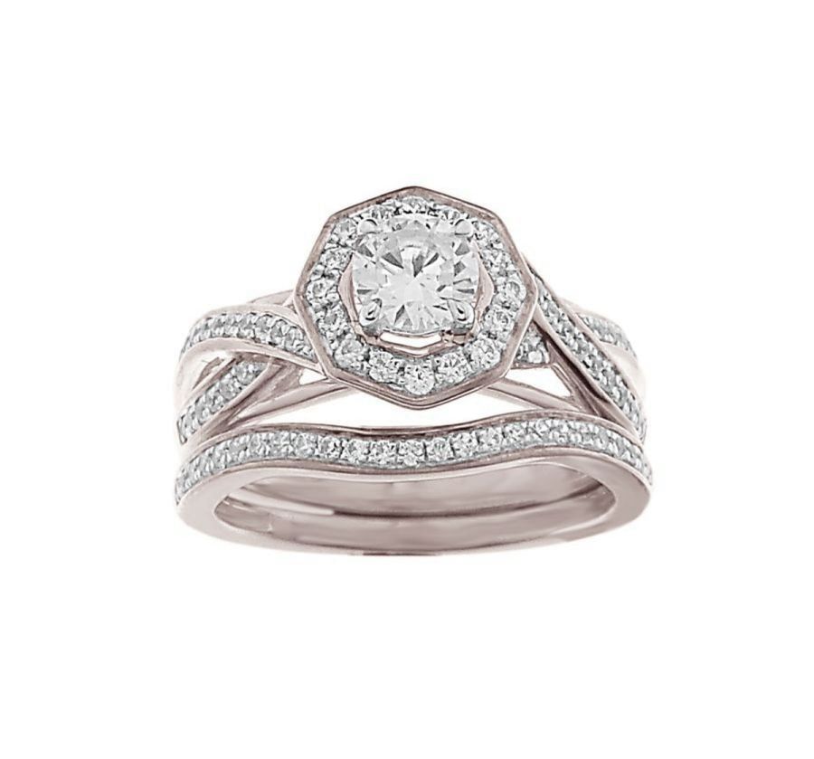 LADIES BRIDAL SET SEMI MOUNT-CENTER-0.50CT 0.50CT ROUND DIAMOND 14K WHITE GOLD