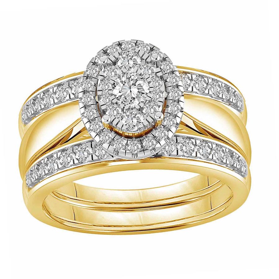 LADIES BRIDAL SET WITH 2 BAND 1.00CT ROUND DIAMOND 14K YELLOW GOLD