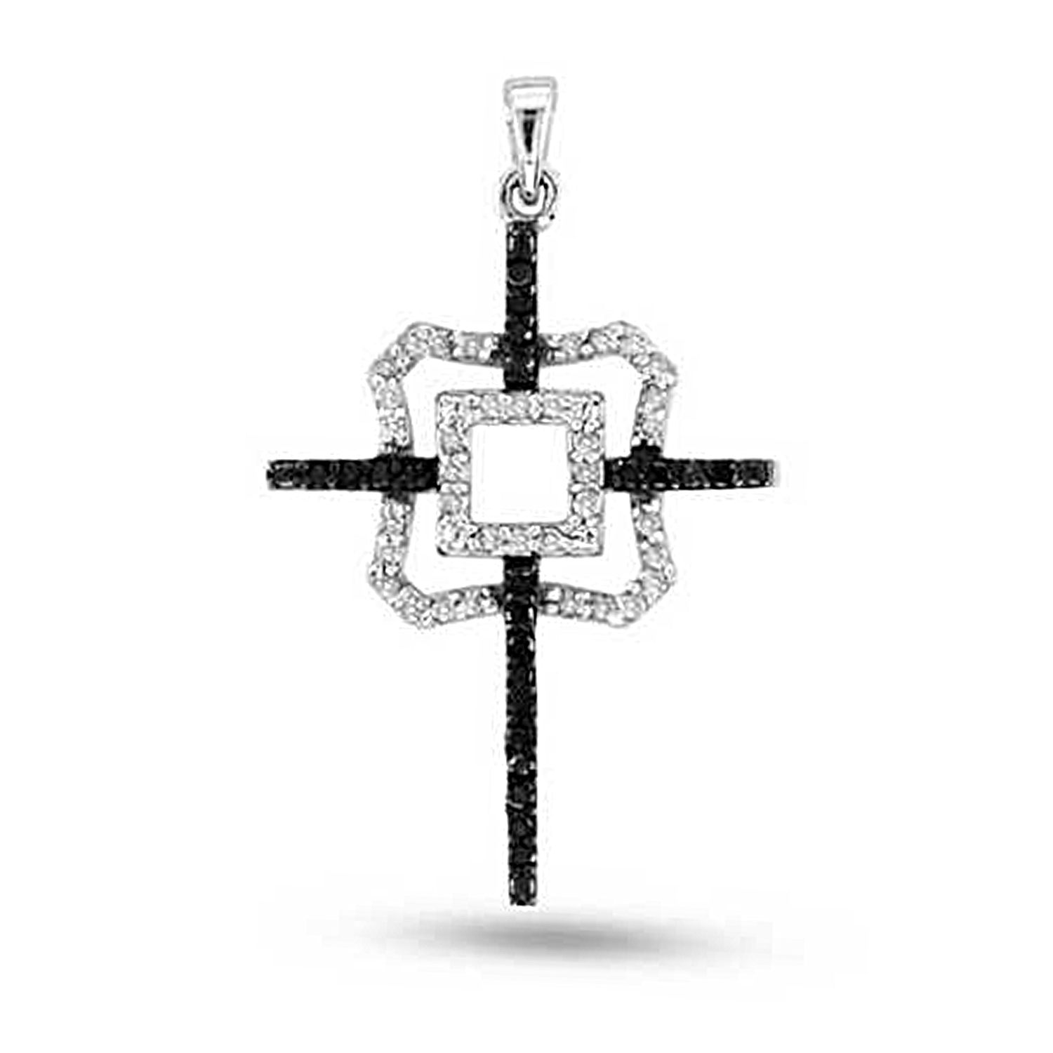 LADIES CROSS 0.25CT ROUND BLACK DIAMOND 10K WHITE GOLD