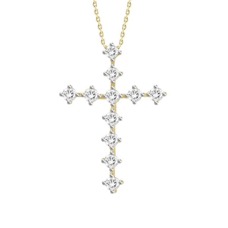 LADIES CROSS 0.25CT ROUND DIAMOND 10K YELLOW GOLD