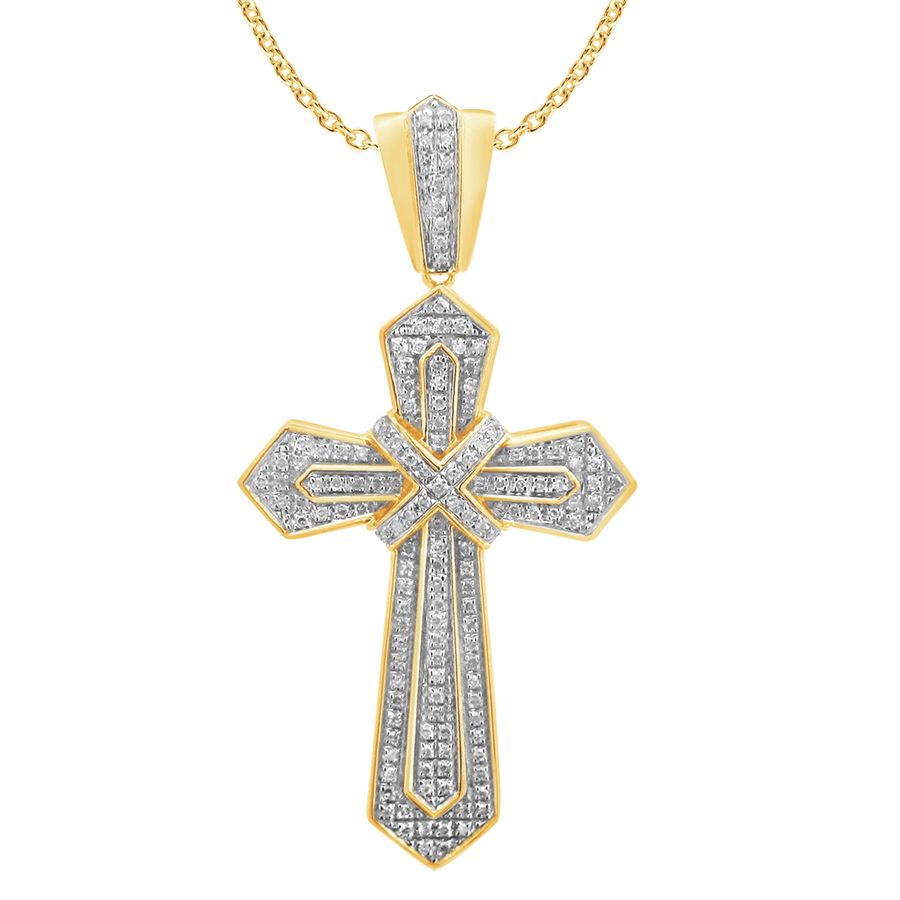 LADIES CROSS 0.50CT ROUND DIAMOND 10K YELLOW GOLD